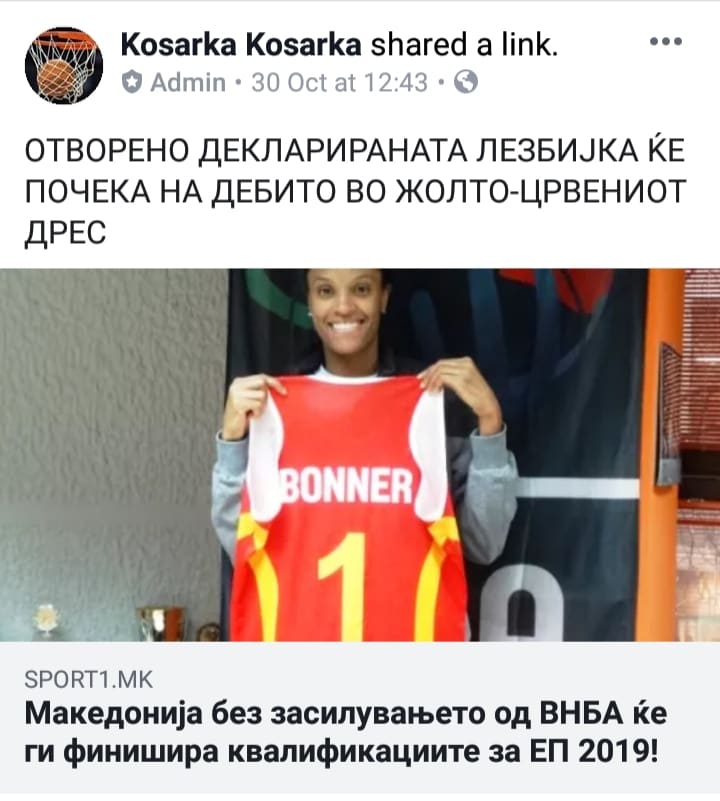 Зошто кога ќе победи тимот на овие момци не искочи текст со наслов од типот „и покрај тоа што е геј успеа машки да извојува победа за својот тим“ ? Немојте да ме разберете погрешно немам ништо против геј луѓето, но ако тоа не е релевантно кај спортистите, зошто е релевантно за спортистките?
