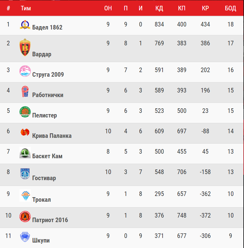 На 26. јануари започнува вториот дел од сезоната во Првата женска лига. По деветте одиграни натпревари Баделки се на првото место, без ниту еден пораз. Додека на второто место се Вардар кои имаат само еден пораз.